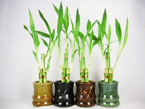 9GreenBox - Live 3 Style Party Set of 4 Bamboo Plant Arrangement w/ Ceramic Vase